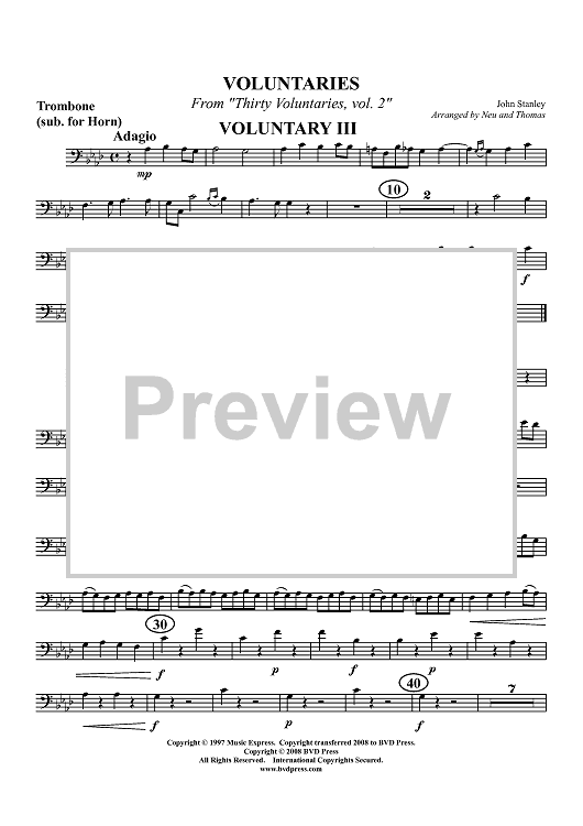 "Voluntaries - Horn in F (plus optional part for Trombone)" Sheet Music by John Stanley