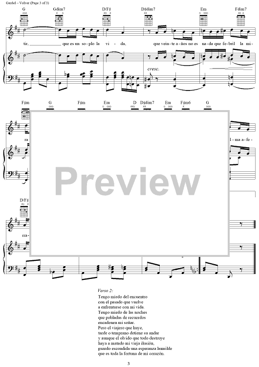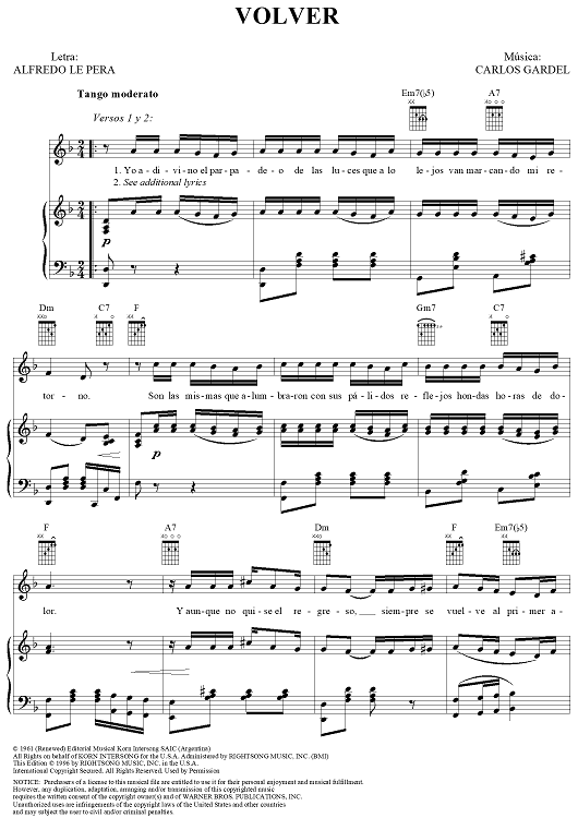 Digital Sheet Music for Volver by Carlos Gardel, Alfredo Le Pera scored for Piano/Vocal/Chords; id:311949