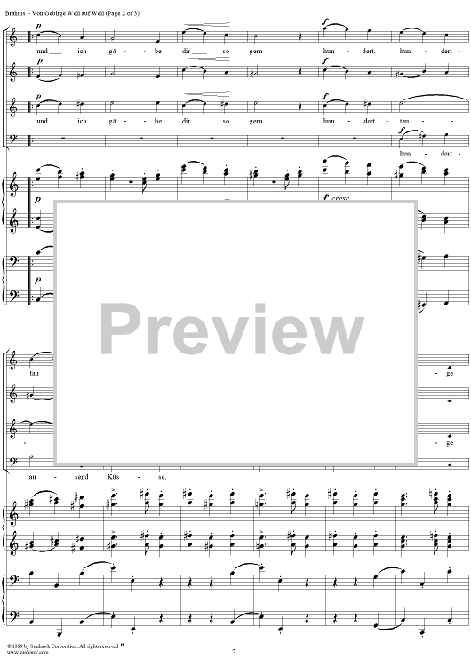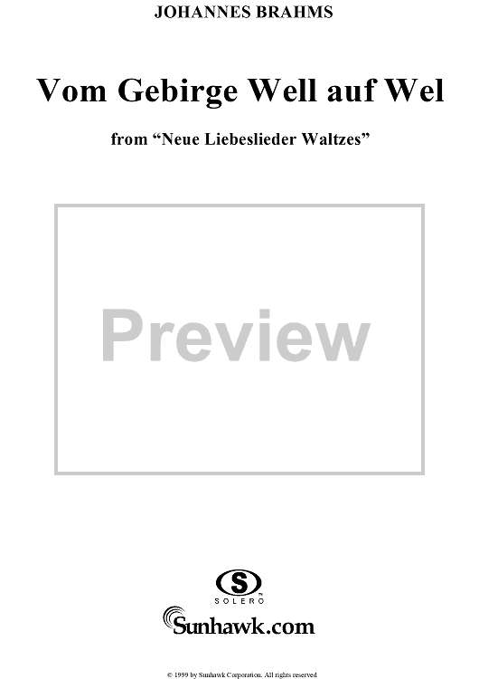 Digital Sheet Music for Vom Gebirge Well auf Well - No. 7 from "Neue Liebeslieder Waltzes" Op. 65 by Johannes Brahms scored for 4-part Mixed Chorus/Piano, 4 Hands; id:274190