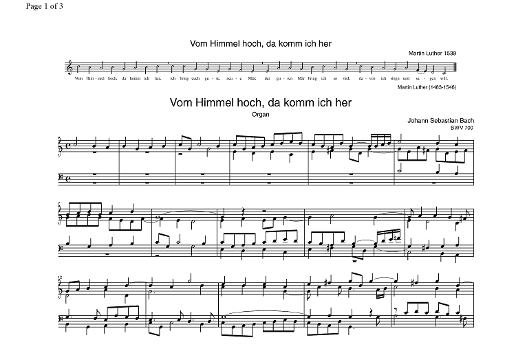 Digital Sheet Music for Vom Himmel hoch, da komm ich her BWV 700 by Johann Sebastian Bach scored for Organ Solo; id:330229