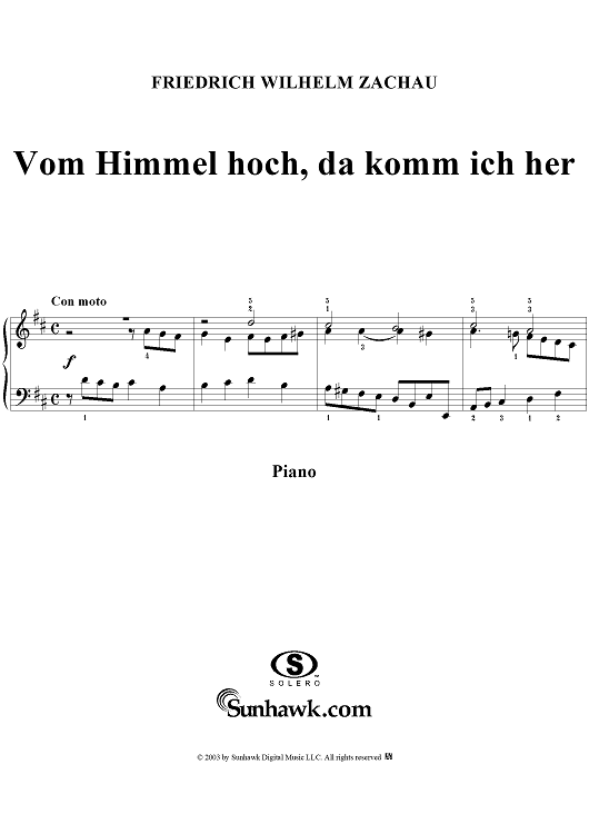 "Vom Himmel Hoch, Da Komm Ich Her" Sheet Music by Friedrich Wilhelm Zachau