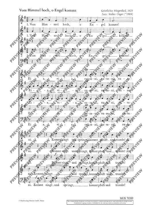 Digital Sheet Music for Vom Himmel hoch, O Engel, kommt by Traditionell, Walter Unger scored for Mixed Choir (ssatb) A Cappella; id:506882