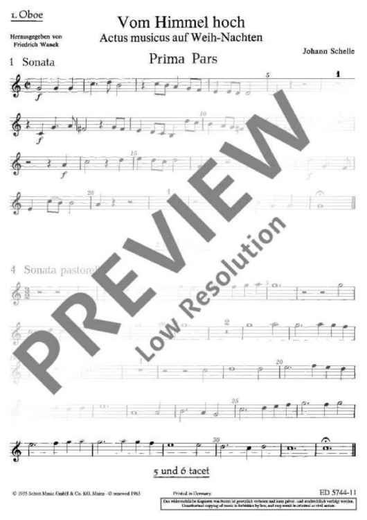 "Vom Himmel Hoch - Oboe I" Sheet Music by Johann Schelle