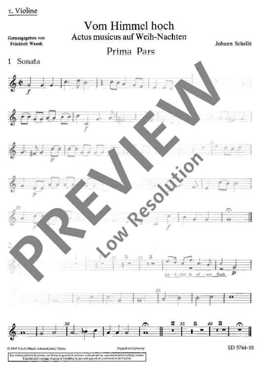 "Vom Himmel Hoch - Violin I" Sheet Music by Johann Schelle
