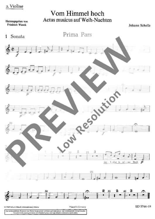 "Vom Himmel Hoch - Violin II" Sheet Music by Johann Schelle