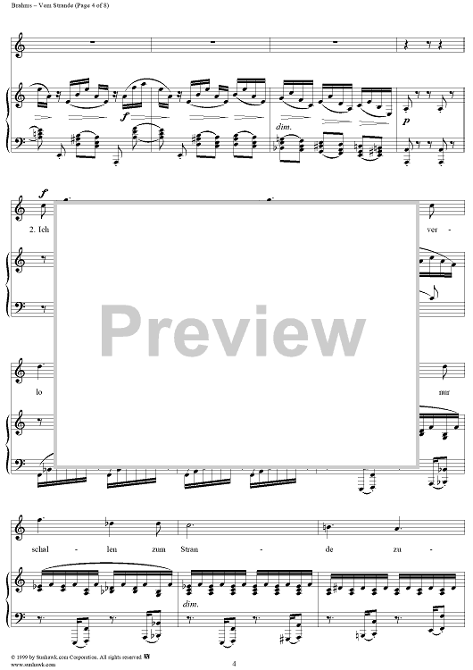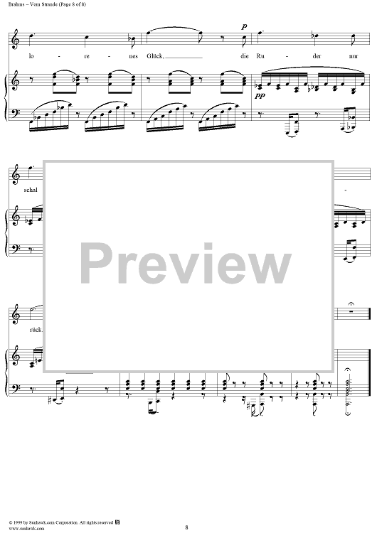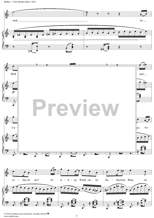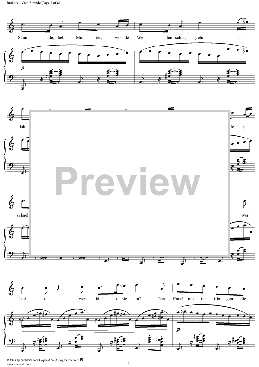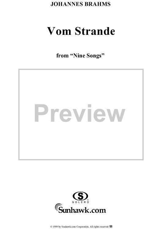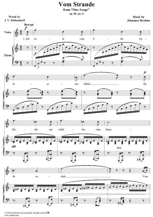 Digital Sheet Music for Vom Strande - No. 6 from "Nine Songs" Op. 69 by Johannes Brahms, Joseph von Eichendorff scored for Voice/Piano; id:273994