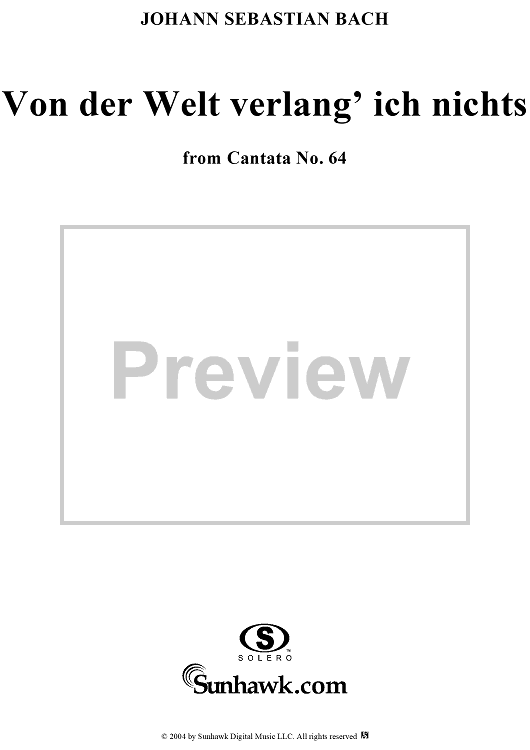 Digital Sheet Music for "Von der Welt verlang' ich nichts", Aria, No. 7 from Cantata No. 64: "Sehet, welch eine Liebe" - Oboe d'amore by Johann Sebastian Bach scored for Alto, Oboe d'amore and Piano or Organ; id:303592