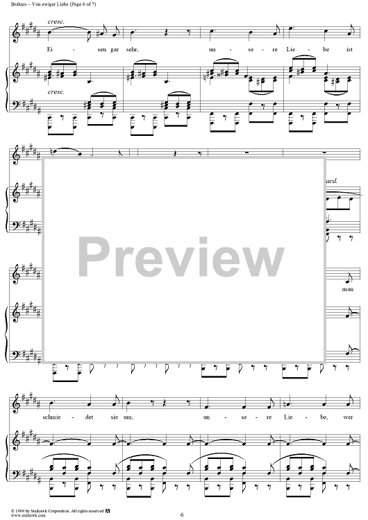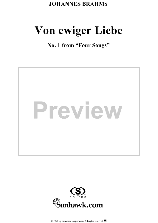 Digital Sheet Music for Von ewiger Liebe - No. 1 from "Four Songs", Op. 43 by Johannes Brahms scored for Voice/Piano; id:274957