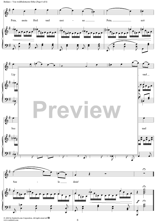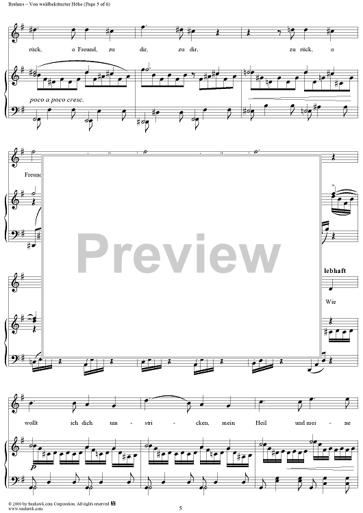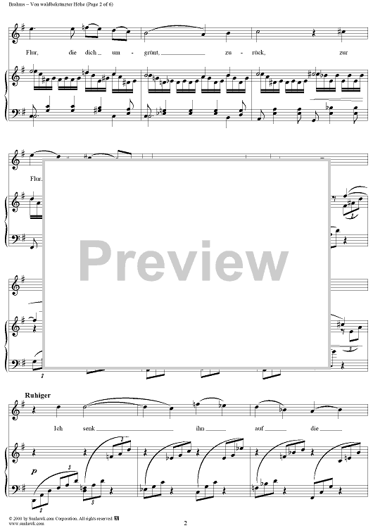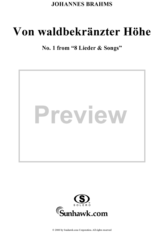 Digital Sheet Music for Von waldbekränzter Höhe - No. 1 from "8 Lieder & Songs" - Op. 57 by Johannes Brahms scored for Voice/Piano; id:274690