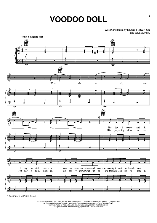 Digital Sheet Music for Voodoo Doll by Fergie, will.i.am scored for Piano/Vocal/Chords; id:402246