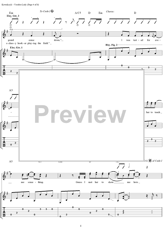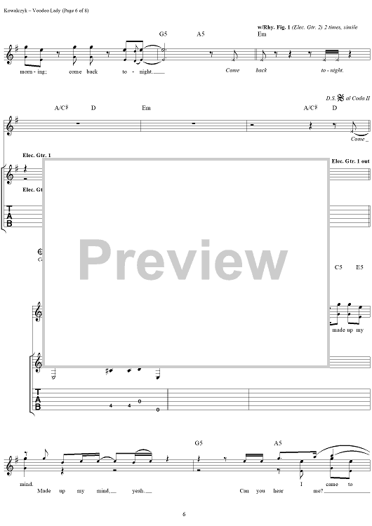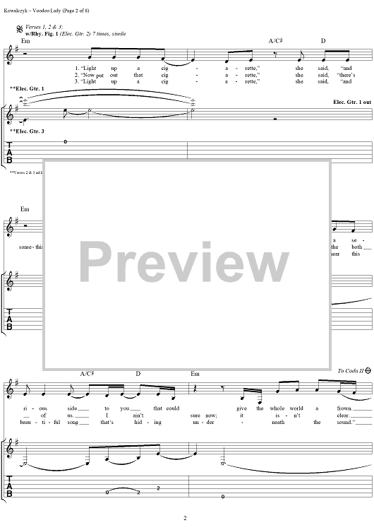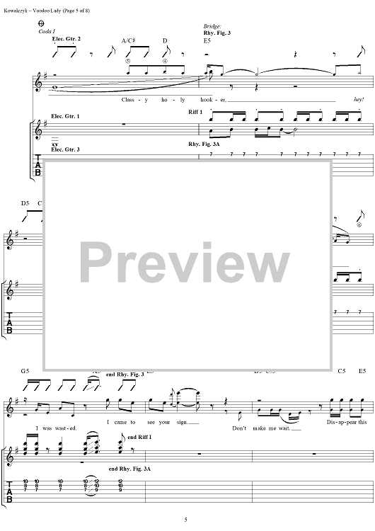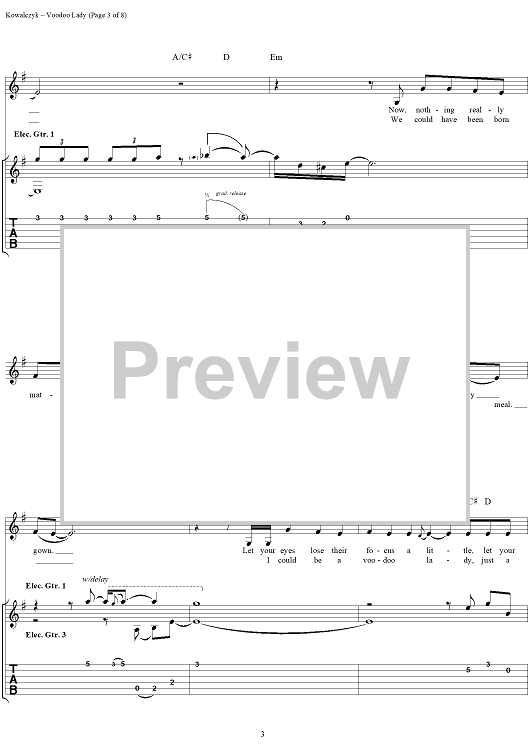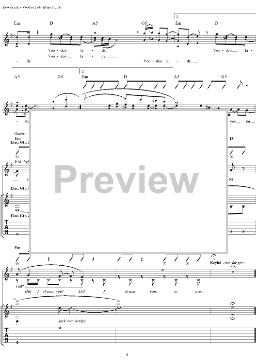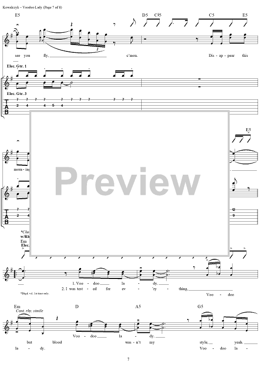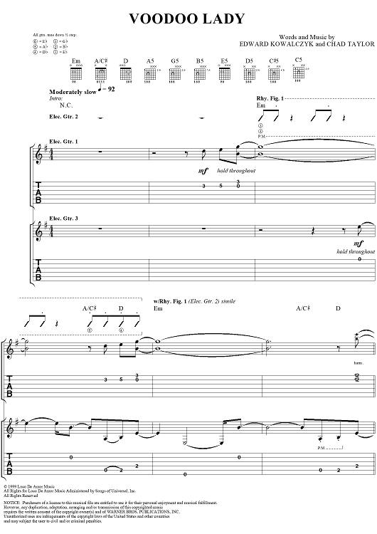 Digital Sheet Music for Voodoo Lady by Live, Edward Kowalczyk, Chad Taylor scored for Guitar Tab/Vocal; id:216755
