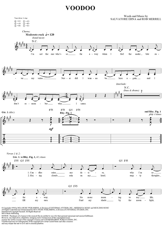 "Voodoo" Sheet Music by Godsmack