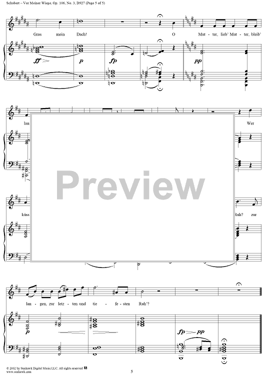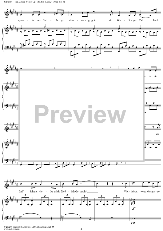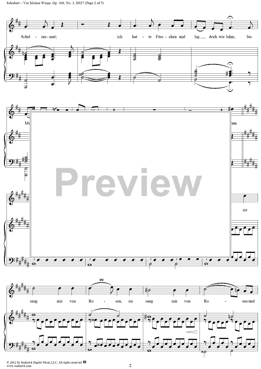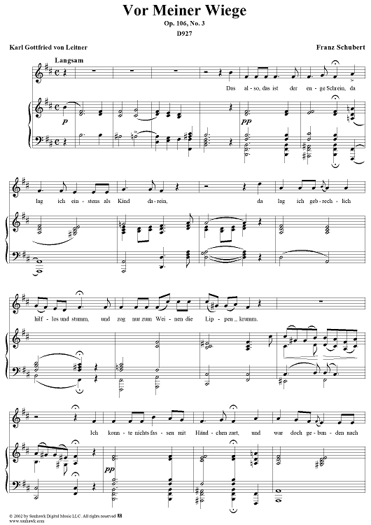 Digital Sheet Music for Vor Meiner Wiege, Op. 106, No. 3, D927 by Franz Schubert scored for Voice/Piano; id:256726