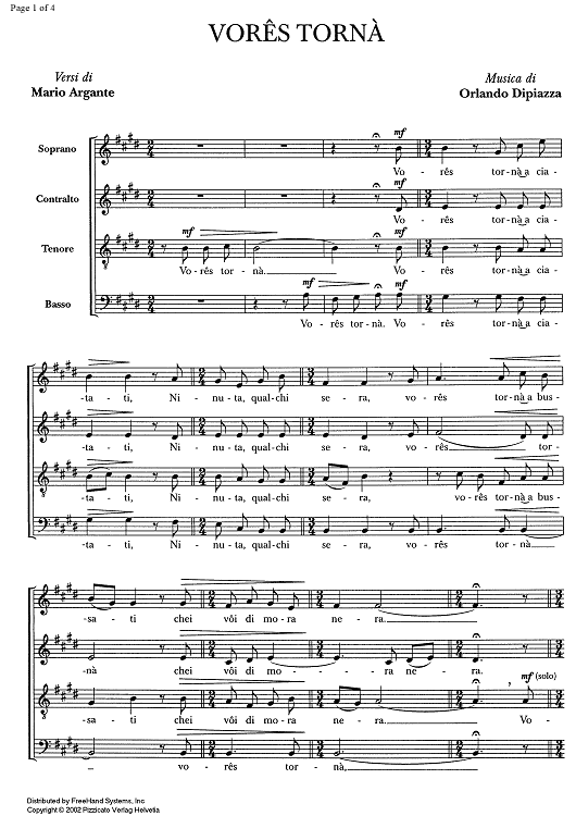 Digital Sheet Music for Vorês tornà - Score by , Orlando Dipiazza scored for SATB Choir; id:351062