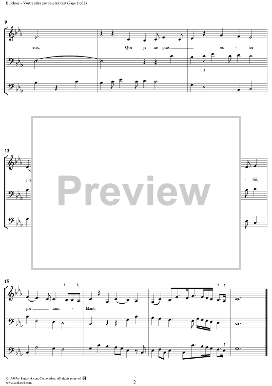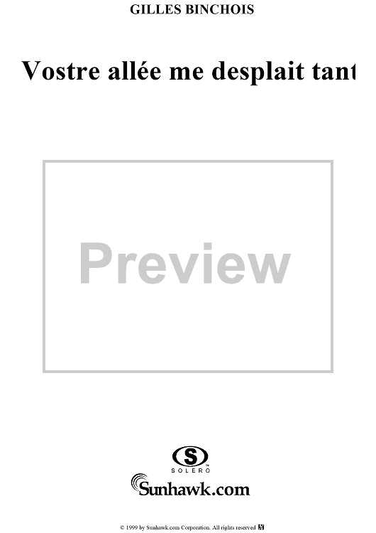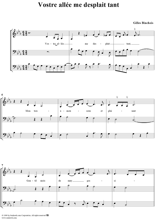 "Vostre allee me desplait tant" Sheet Music by Gilles Binchois