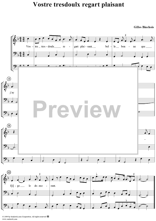 Digital Sheet Music for Vostre tresdoulx regart plaisant by , Gilles Binchois scored for Mixed Chorus; id:274997