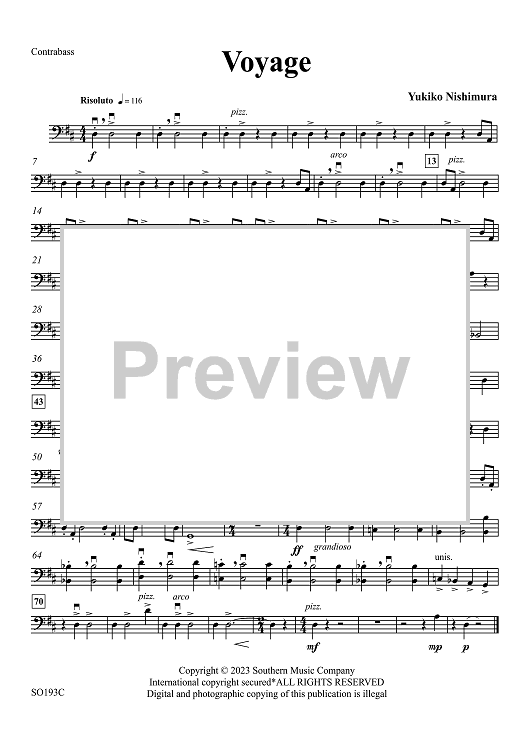 "Voyage - Contrabass" Sheet Music by Yukiko Nishimura