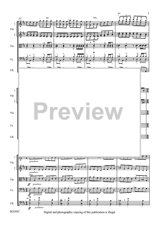 Voyage is motivating and driven music. The ocean has so many faces and reflects diverse colors, and each section of the piece expresses a part of this countenance. In the first section, the continuous pattern by the lower strings expresses excitement, with the main melody cheerfully going with it. In the middle section, at m. 23, you can hear the refreshing breeze with the pizzicatos. From m. 31, the waves and the wind are coming to the ship. Enjoy creating the contrasting colors of each section. The music will sound even more joyful if the players attend precisely to all written articulations.