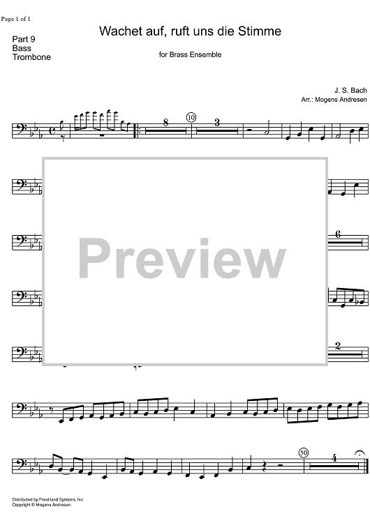 Digital Sheet Music for Wachet auf, ruft uns die Stimme - Bass Trombone by Mogens Andresen, Johann Sebastian Bach scored for Brass Ensemble; id:330104
