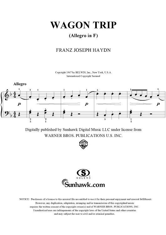 "Wagon Trip (Allegro in F)" Sheet Music by Franz Joseph Haydn