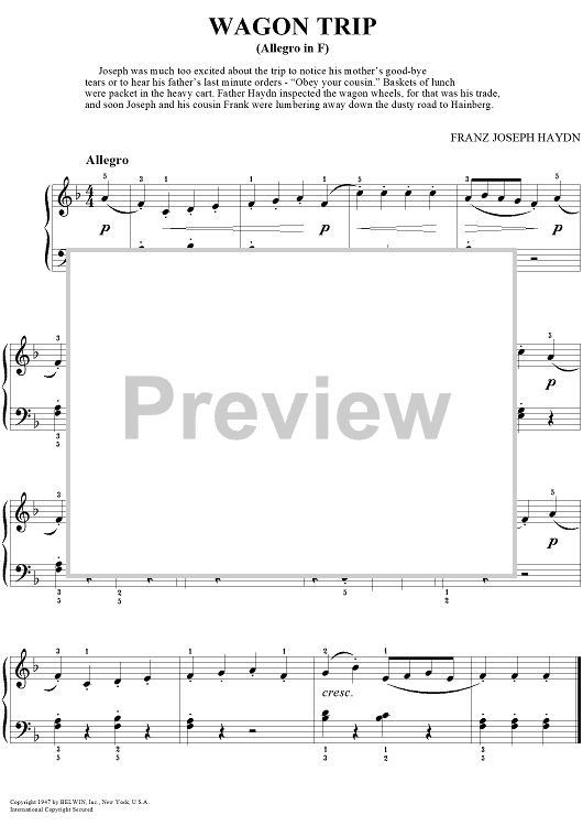 Digital Sheet Music for Wagon Trip (Allegro in F) by Franz Joseph Haydn, John W. Schaum scored for Easy Piano; id:296190