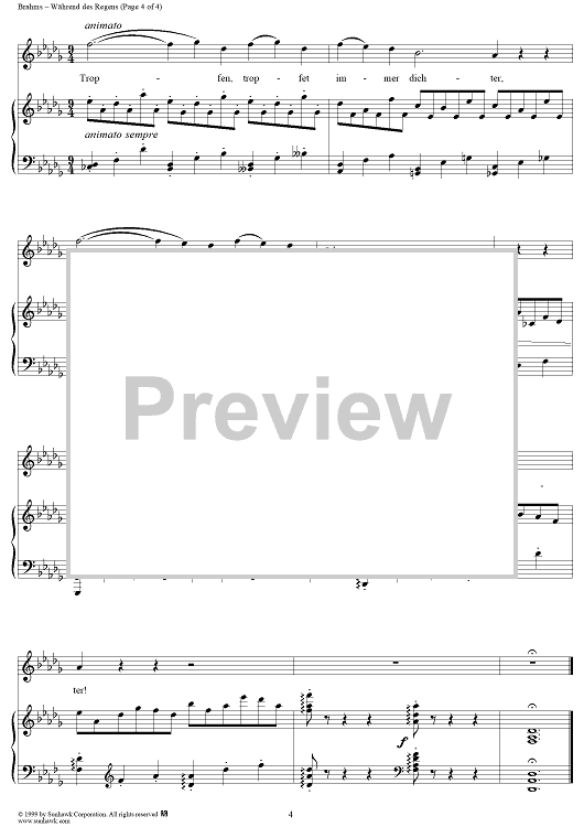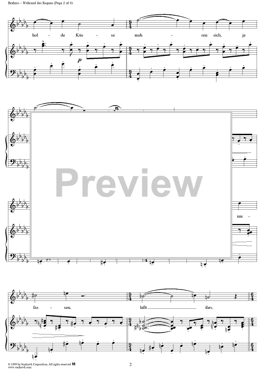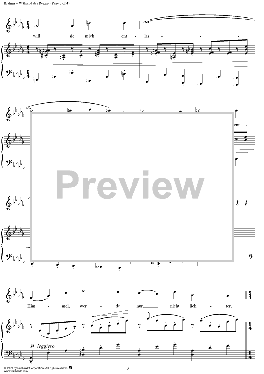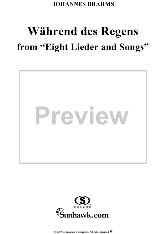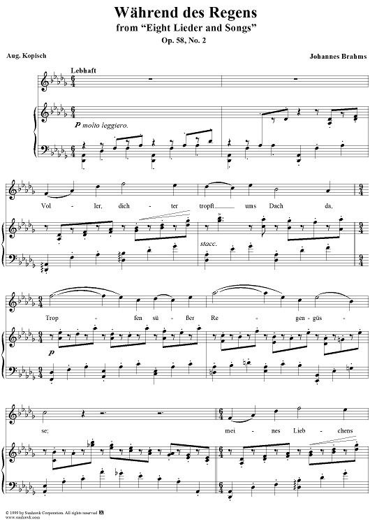 Digital Sheet Music for Während des Regens by Johannes Brahms, Aug. Kopisch scored for Voice/Piano; id:118490