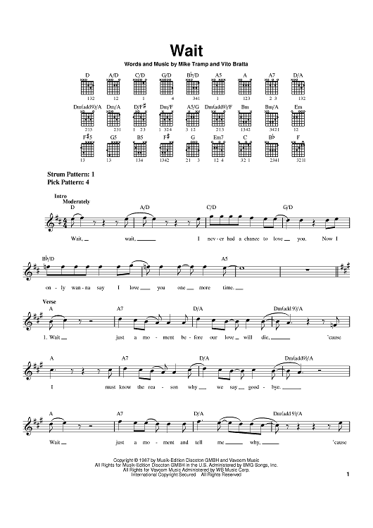 Digital Sheet Music for Wait by White Lion, Vito Bratta, Mike Tramp scored for Easy Guitar; id:370911