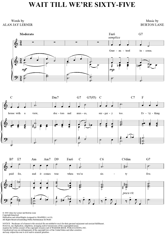 Digital Sheet Music for Wait Till We're Sixty-Five by Burton Lane, Alan Jay Lerner scored for Piano/Vocal/Chords; id:297831