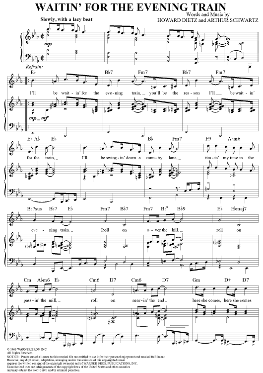 Digital Sheet Music for Waitin' for the Evening Train by Howard Dietz, Arthur Schwartz scored for Piano/Vocal/Chords; id:315568