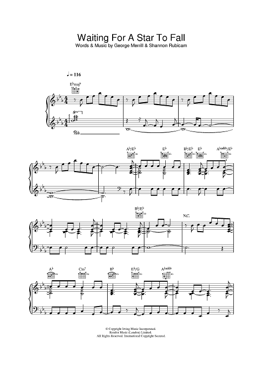 Digital Sheet Music for Waiting For A Star To Fall by George Merrill, Shannon Rubicam, Boy Meets Girl scored for Piano/Vocal/Chords; id:385359