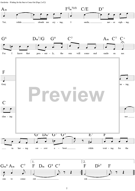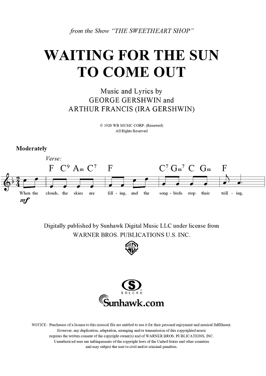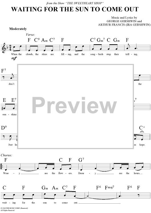 Digital Sheet Music for Waiting for the Sun to Come Out by George Gershwin, Ira Gershwin scored for Lead Sheet; id:283764