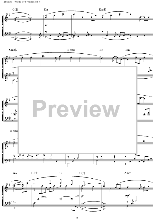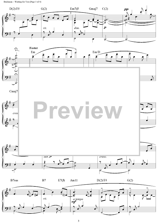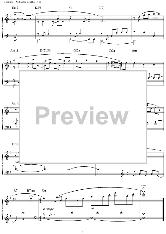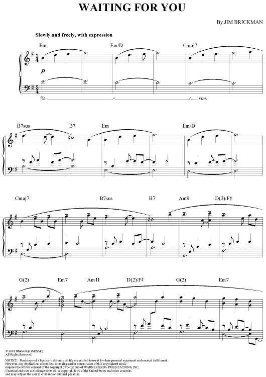 Digital Sheet Music for Waiting for You by Jim Brickman scored for Piano Solo; id:284504