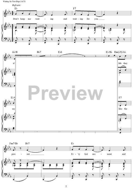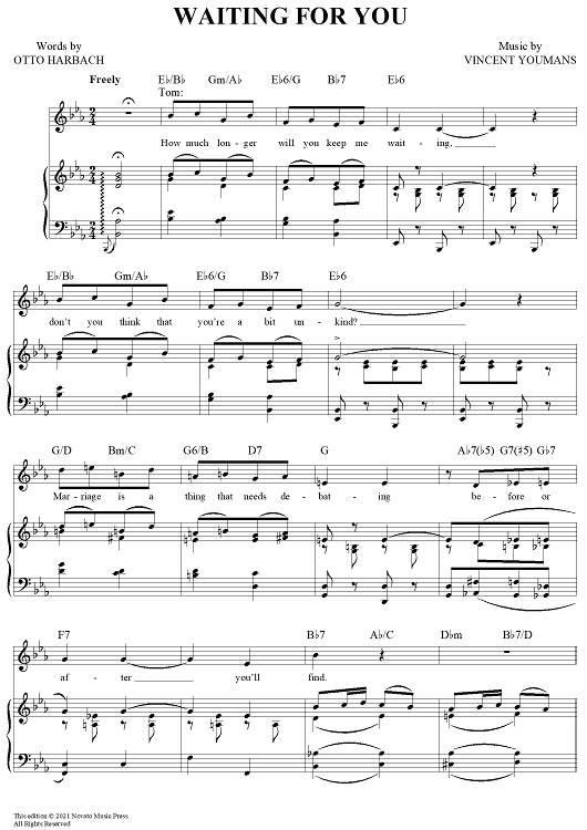 Digital Sheet Music for Waiting for You by Vincent Youmans, Otto Harbach scored for Piano/Vocal/Chords; id:355312