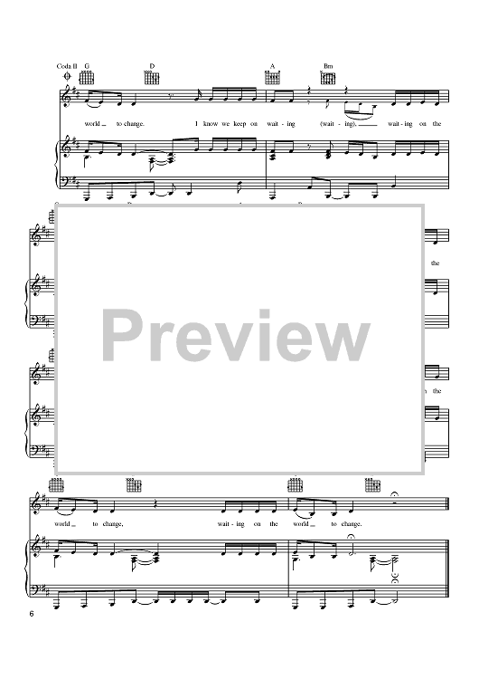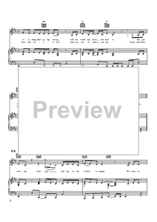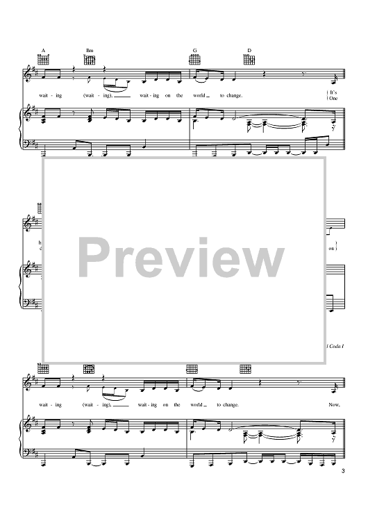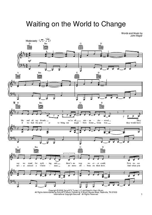 Digital Sheet Music for Waiting On The World To Change by John Mayer scored for Piano/Vocal/Chords; id:393585