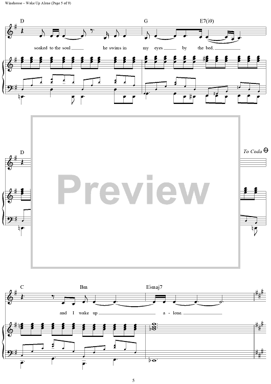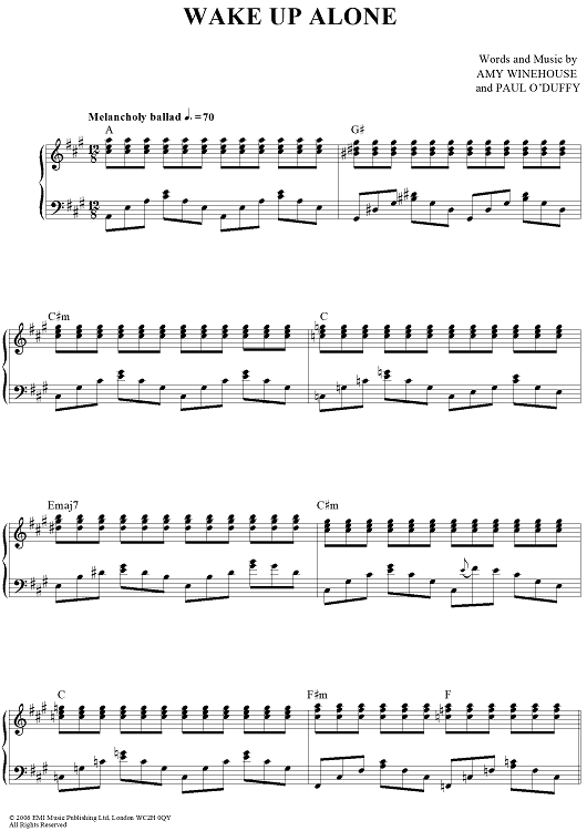 "Wake Up Alone" Sheet Music by Amy Winehouse