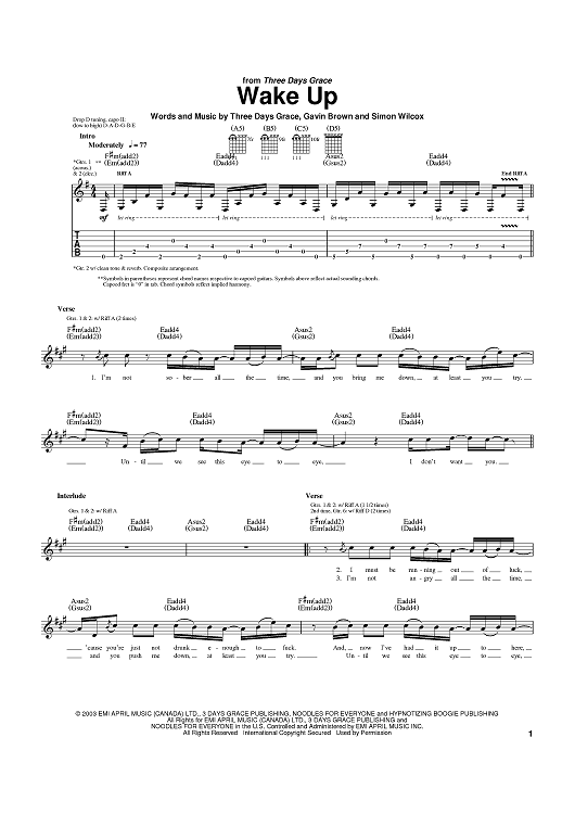 Digital Sheet Music for Wake Up by Golden Brown, Three Days Grace, Simon Wilcox scored for Guitar Tab; id:373638