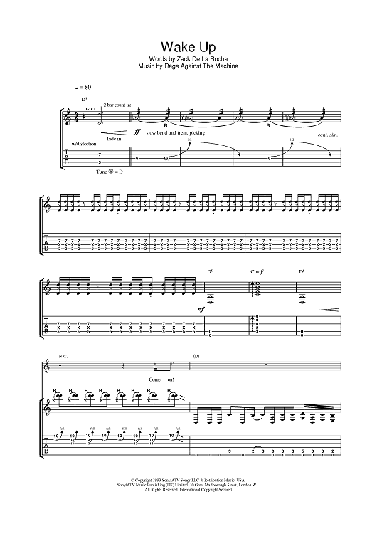 Digital Sheet Music for Wake Up by Rage Against the Machine, Zack De La Rocha scored for Guitar Tab; id:375899