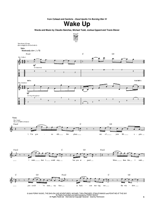 Digital Sheet Music for Wake Up by Coheed and Cambria, Josh Eppard, Claudio Sanchez, Travis Stever, Michael Todd scored for Guitar Tab; id:391194