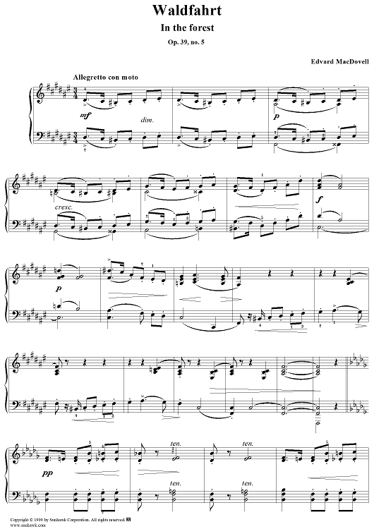Digital Sheet Music for Waldfahrt (In the Forest), Op. 39, No. 5 by Edward MacDowell scored for Piano Solo; id:255319