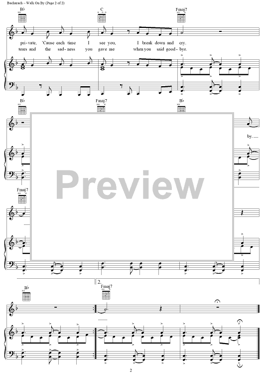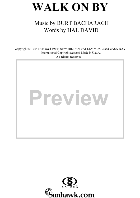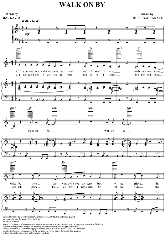 Digital Sheet Music for Walk On By by Hal David, Burt Bacharach, Dionne Warwick scored for Piano/Vocal/Chords; id:113649