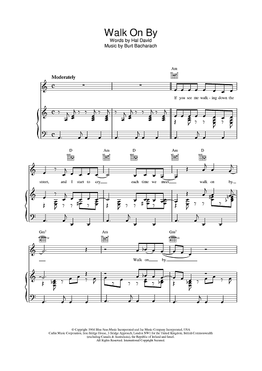 Digital Sheet Music for Walk On By by Burt Bacharach scored for Piano/Vocal/Chords; id:375682
