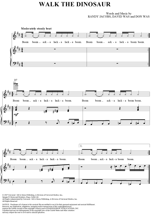 Digital Sheet Music for Walk the Dinosaur by Don Was, Randy Jacobs, David Was, Was (Was Not) scored for Piano/Vocal/Chords; id:297074