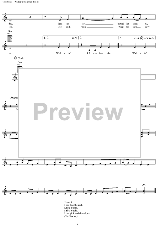 "Walkin' Boss" Sheet Music by Jerry Garcia
