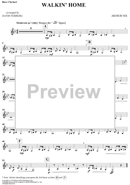 Digital Sheet Music for Walkin' Home by Arthur Nix, David Ferreira scored for Bb Bass Clarinet/Piano; id:437421