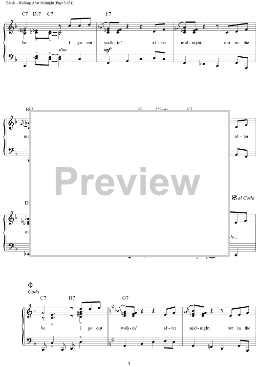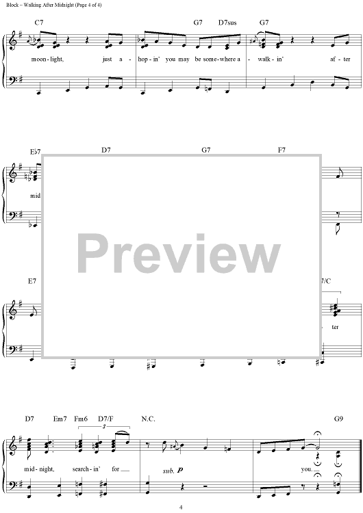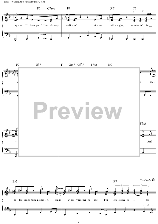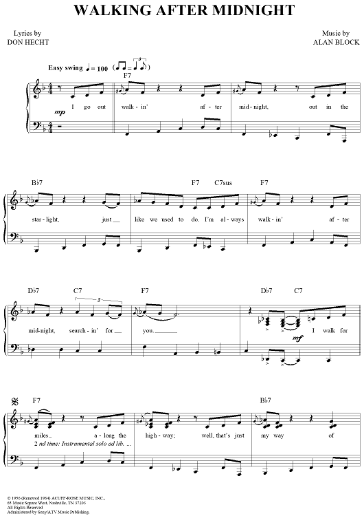 Digital Sheet Music for Walking After Midnight by Patsy Cline, Garth Brooks, Don Hecht, Alan W. Block scored for Piano/Vocal/Chords; id:124224