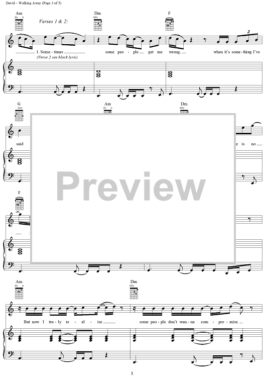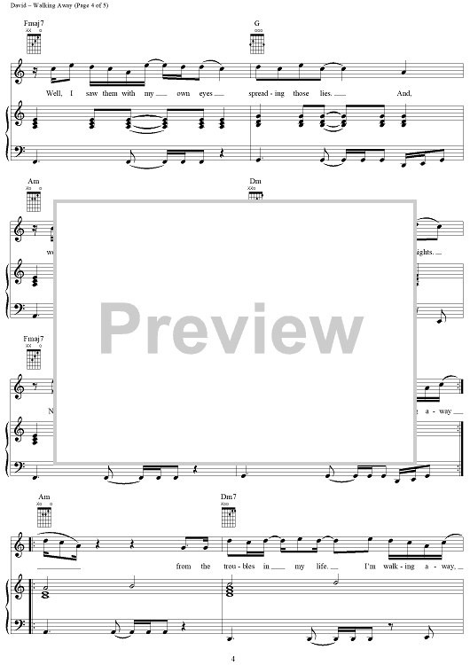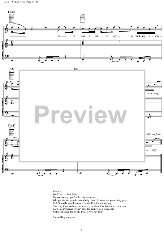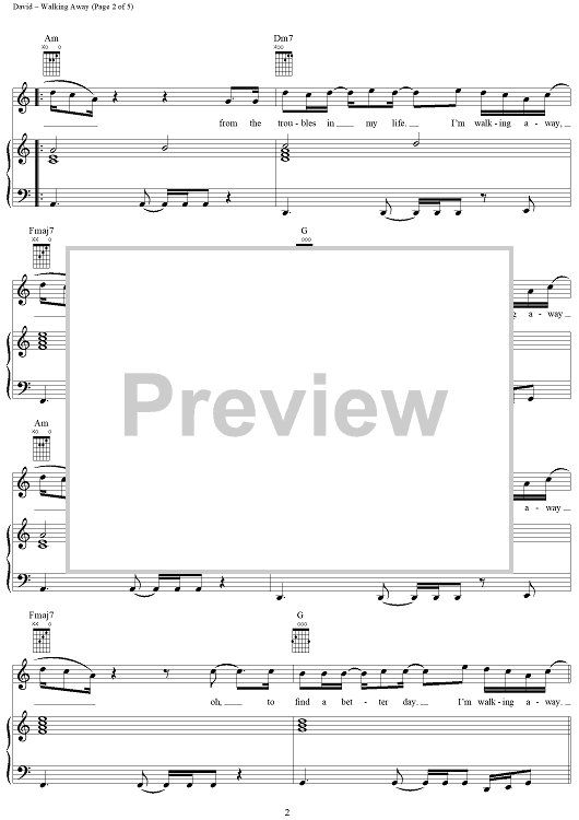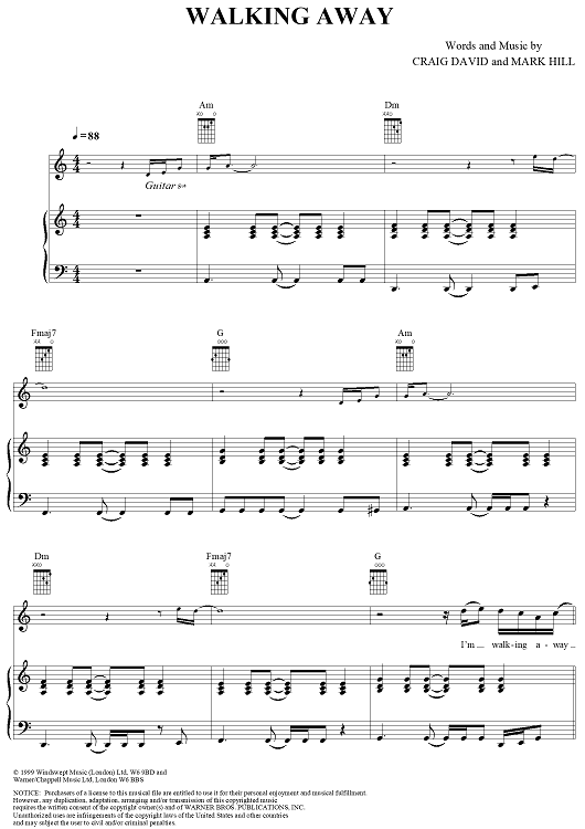 Digital Sheet Music for Walking Away by Craig David, Mark Hill scored for Piano/Vocal/Chords; id:284946