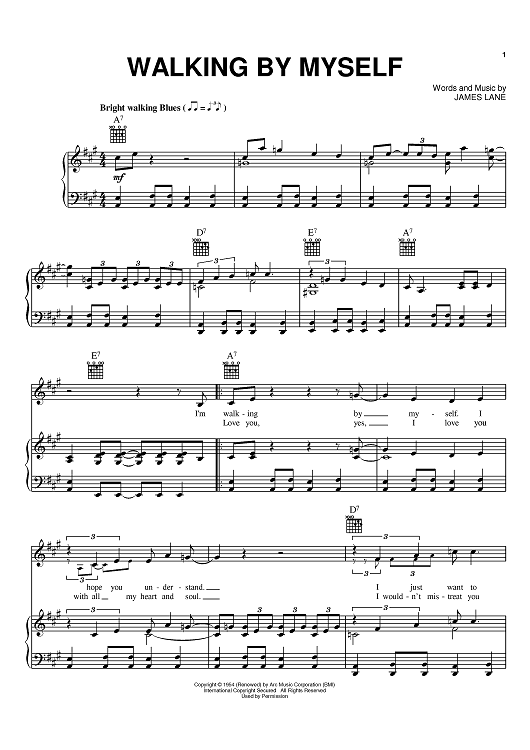 Digital Sheet Music for Walking By Myself by Jimmy Rogers scored for Piano/Vocal/Chords; id:368432