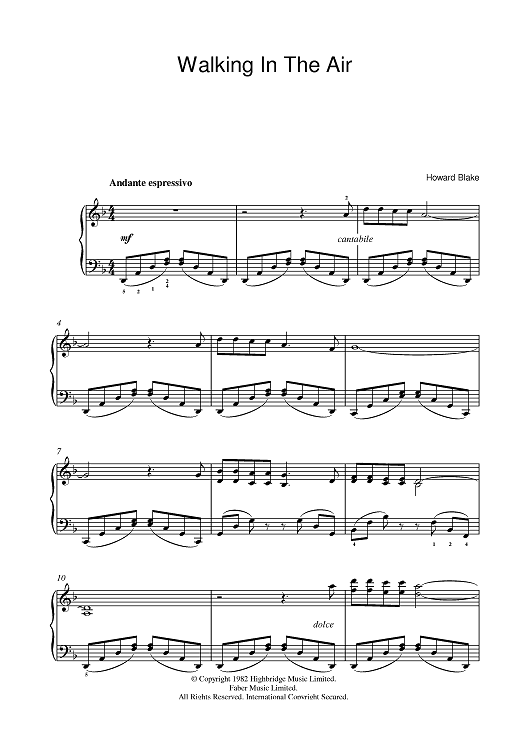 Digital Sheet Music for Walking In The Air by Howard Blake, Aled Jones scored for Piano; id:394218