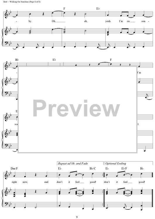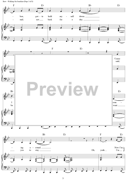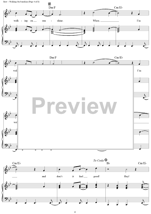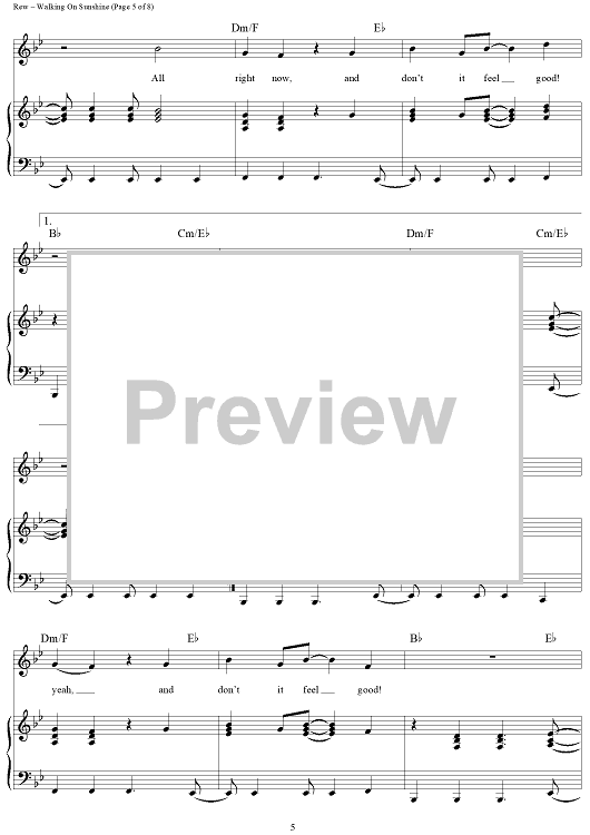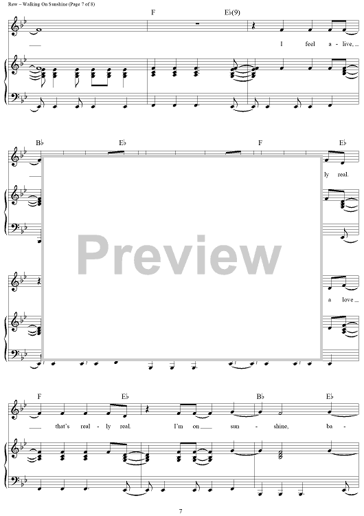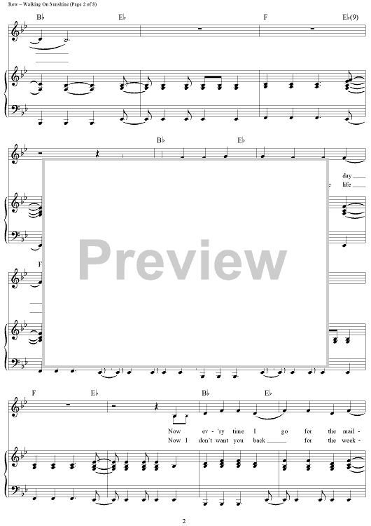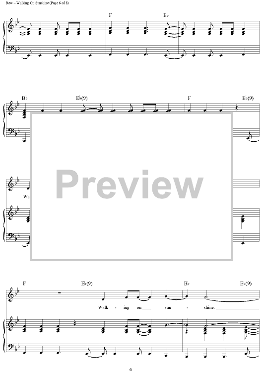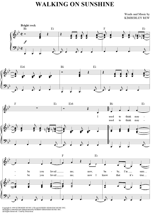 Digital Sheet Music for Walking On Sunshine by Katrina and the Waves, Kimberley Rew scored for Piano/Vocal/Chords; id:368791