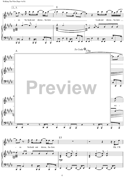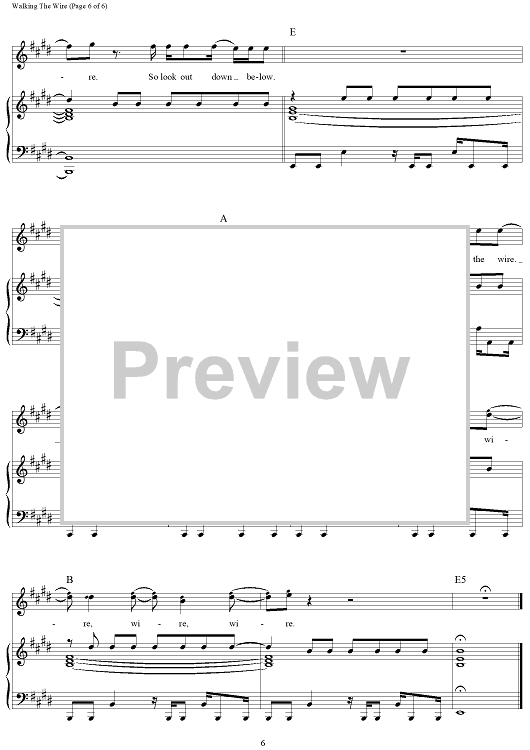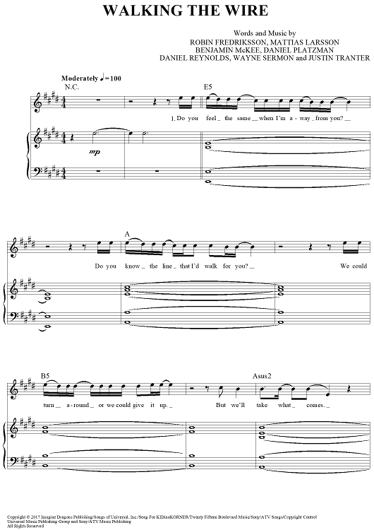 Digital Sheet Music for Walking The Wire by Benjamin McKee, Daniel Sermon, Imagine Dragons, Daniel Platzman, Wayne Sermon, Justin Tranter, Robin Fredriksson, Mattias Larsson scored for Piano/Vocal/Chords; id:465336